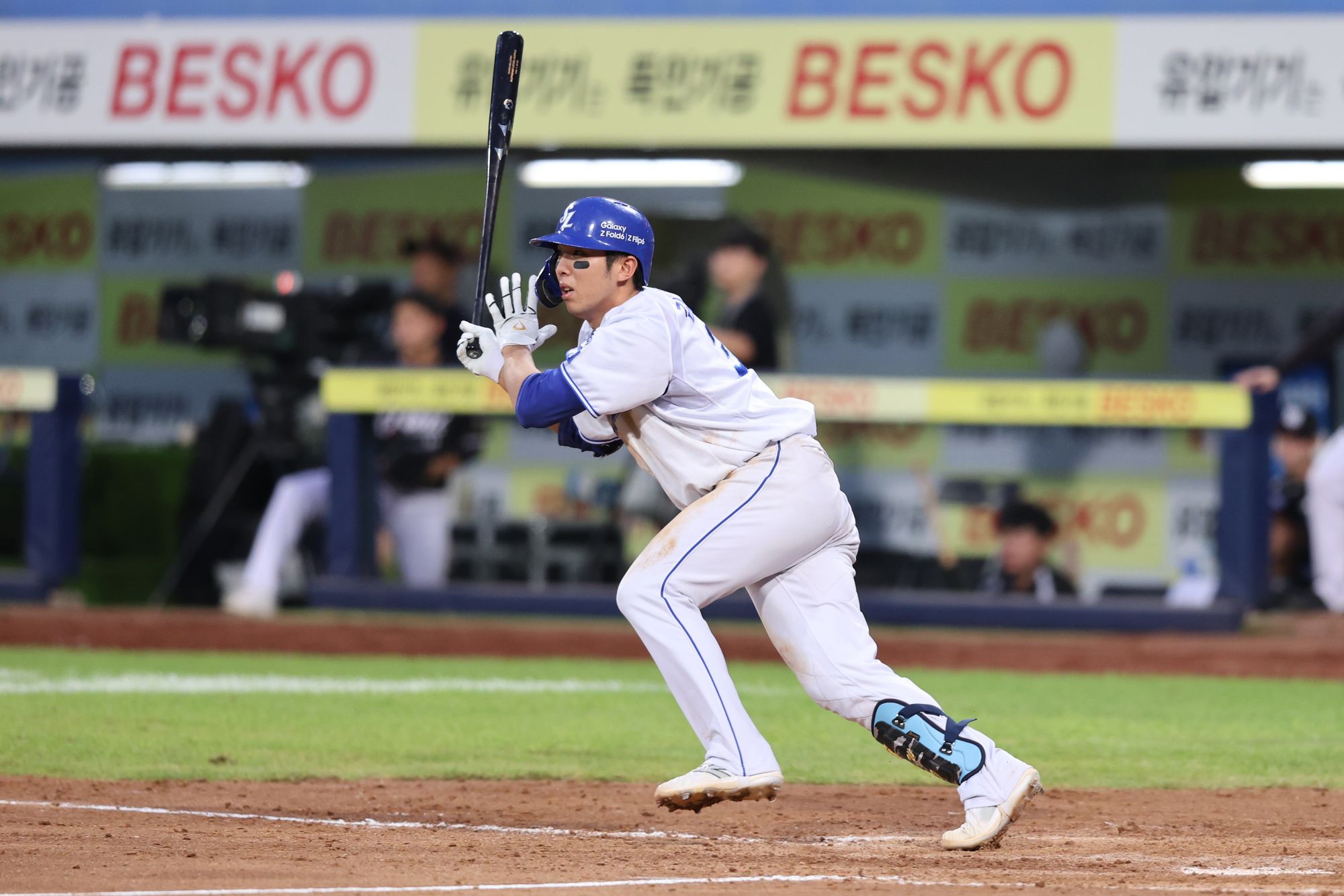 첫 타자 김상수를 처리한 김재윤은 4번 타자 장성우에게 홈런을 허용, 한 점 차까지 추격을 허용했지만, 오재일을 파울플라이로 처리하며 2아웃까지 책임집니다.