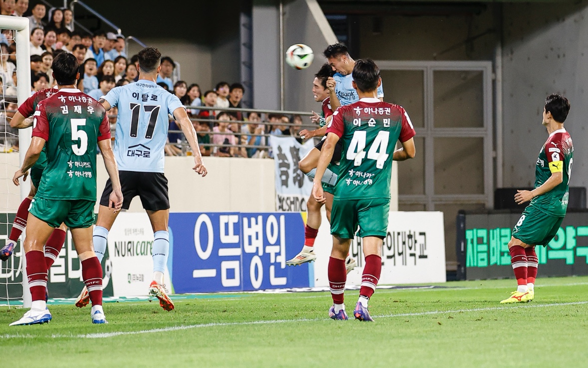 27일 저녁 DGB대구은행파크에서 펼쳐진 하나은행 K리그1 2024 대전하나시티즌과의 25라운드에서 대구는 요시노의 선취 골을 지키지 못하고 1-1 무승부로 경기를 마무리합니다.