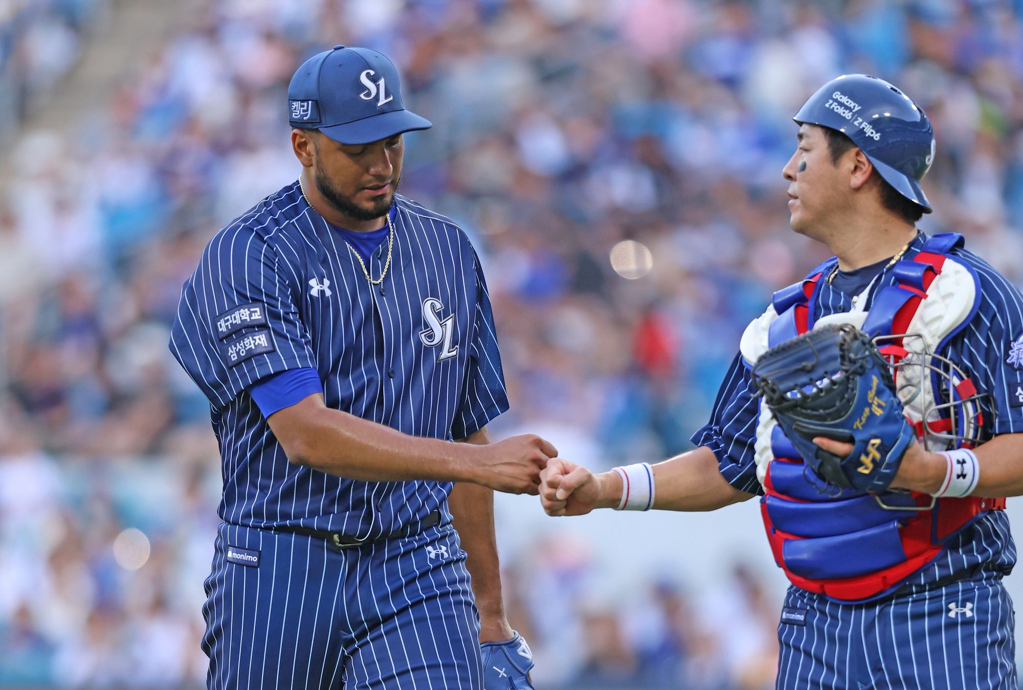 팀에서 가장 좋은 모습을 보이는 레예스를 선발로 시작한 삼성은 7회까지 6피안타 8삼진의 호투로 선발의 몫을 다한 활약 속, 4회말 터진 이재현과 강민호의 백투백 홈런으로 리드를 잡아 승리의 가능성을 높였습니다.
