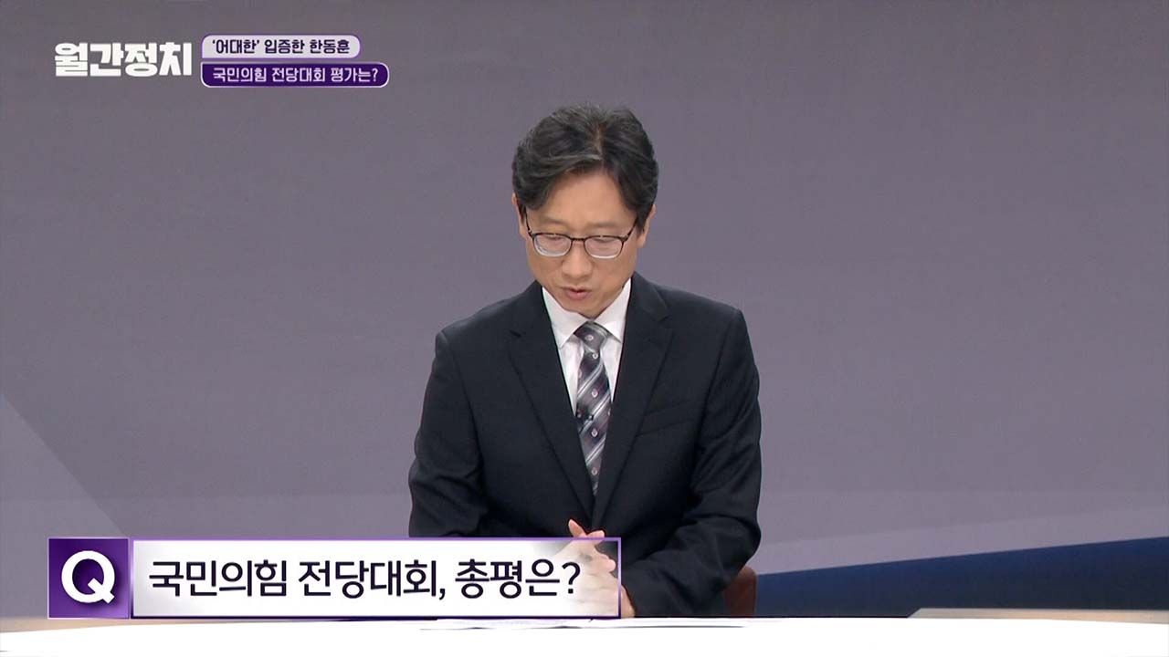 오늘의 주제는 국민의힘 전당대회 결과 평가입니다. 월간 정치 함께하실 패널 소개하겠습니다. 박재일 영남일보 논설실장 모셨습니다. 어서 오십시오.