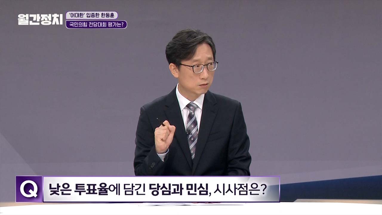 투표율이 떨어졌잖아요. 떨어진 것은 현재 보수 정치, 그러니까 윤석열 대통령에 대한 지지도가 개선이 안 되지 않습니까? 그러니까 집권당과 대통령의 지금 정치에 대한 일정 정도의 불만, 그 부분이 반영된 게 아니냐고 생각합니다. 큰 틀에서 보수당 당원들 속에서도 지금 대통령이 하는 정치에 대한 불만, 만족하지 못한 마음들이 투표율에서 반영된 것 아니냐, 이렇게 본다는 거죠.
