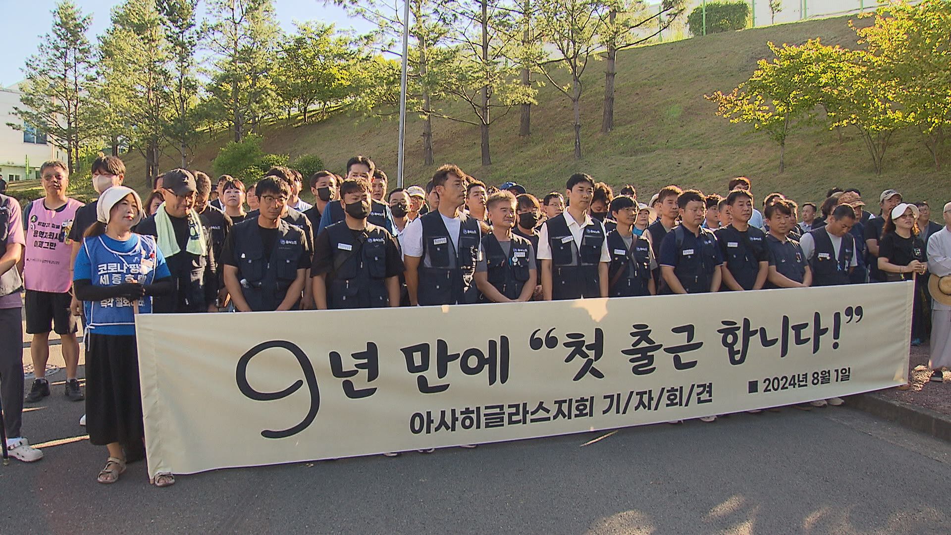 노조 깃발을 들고 출근한 복직 노동자들은 9년 전과는 회사가 달라졌기를 기대했습니다.
