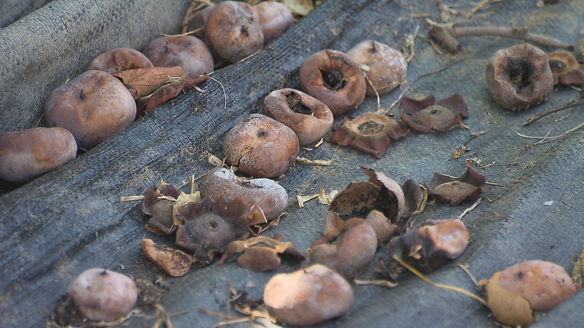 그런데, 농장 대표의 말을 듣고 자세히 살펴보니 감이 달려 있어야 할 곳에 감은 없고, 감꼭지나 꽃잎만 붙어 있는 가지가 곳곳에 있었습니다.