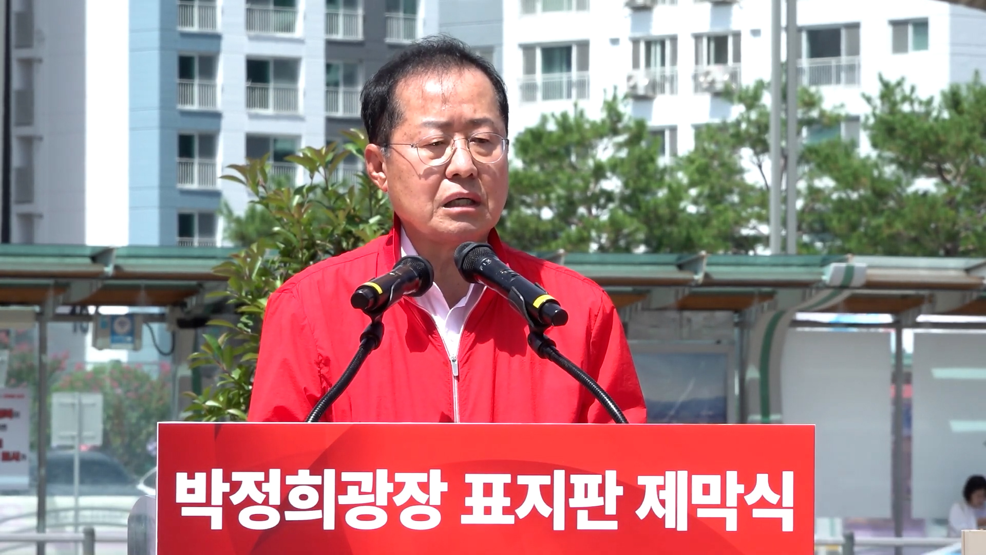 홍준표 대구시장 "대구의 관문인 동대구역 광장을 박정희 광장으로 명명하고 그 의미를 되새기고자 마련된 겁니다. 동대구역 광장은 대구를 대표하는 관문이자 우리 대구의 얼굴입니다. 대구를 대표하는 이곳에 박정희 광장 표지판을 설치하고 올해 안에 박정희 동상을 세워 박정희 대통령의 산업화 정신을 시민들과 함께 기념할 생각입니다. 또한 이런 산업화 정신을 바탕으로 대구가 다시 한번 대한민국의 중심 도시로 우뚝 설 수 있는 계기를 마련하고자 합니다."