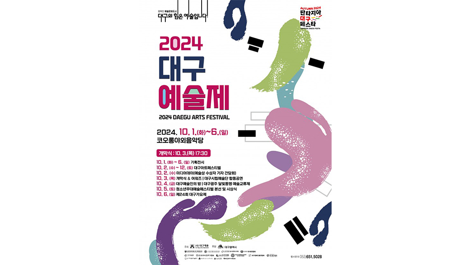 대구예술문화단체총연합회는 10월 1일부터 6일까지 2024대구예술제와 청소년무대예술페스티벌을 엽니다.