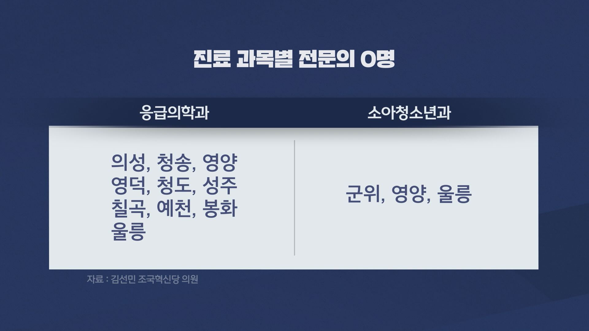 이 가운데 군위, 영양, 울릉에는 소아청소년과 전문의도 없는 것으로 조사됐습니다.