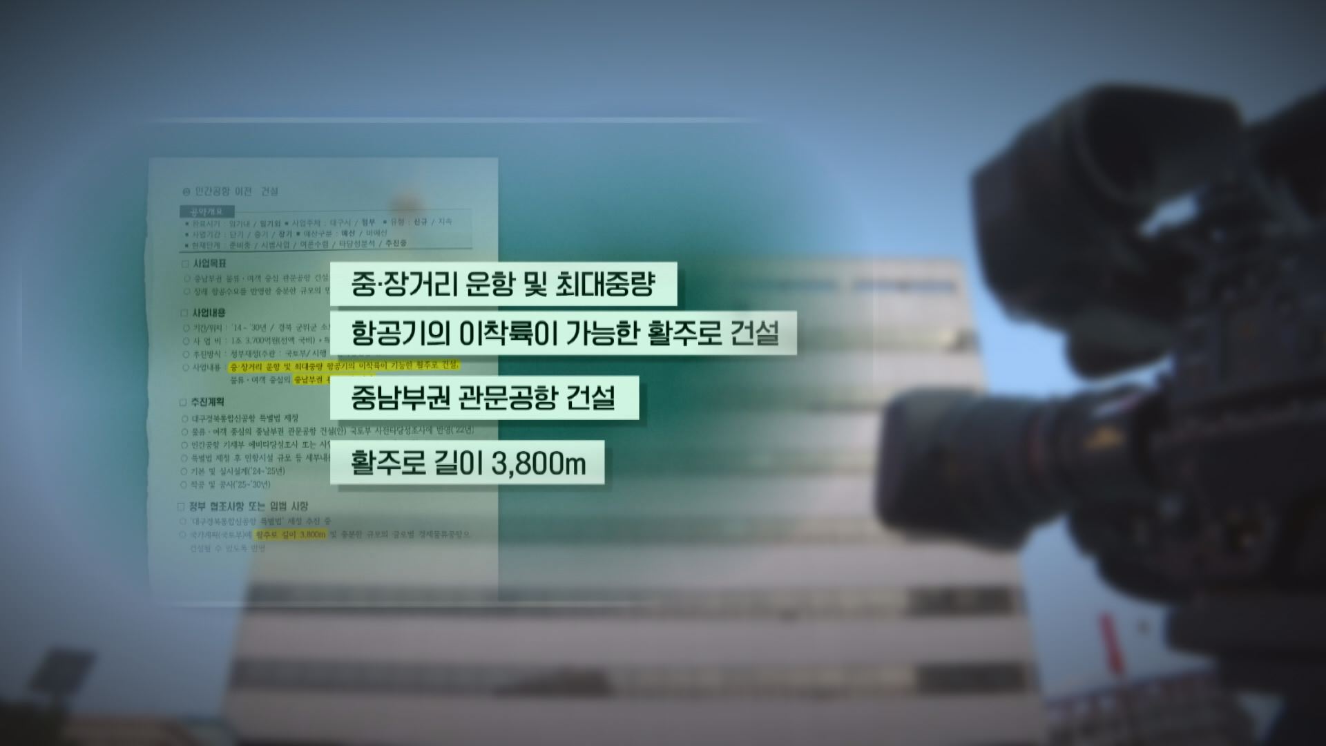 장거리 노선 유치를 위한 활주로 길이를 포함해 신공항특별법 내용이 허술하고 공항 건설 방식도 불리해 특수목적법인 SPC 시행자를 찾기도 어려울 수도 있다는 등의 내용이었습니다.