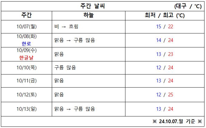 10월 2주 차 대구·경북 '날씨 체크' 시작합니다.