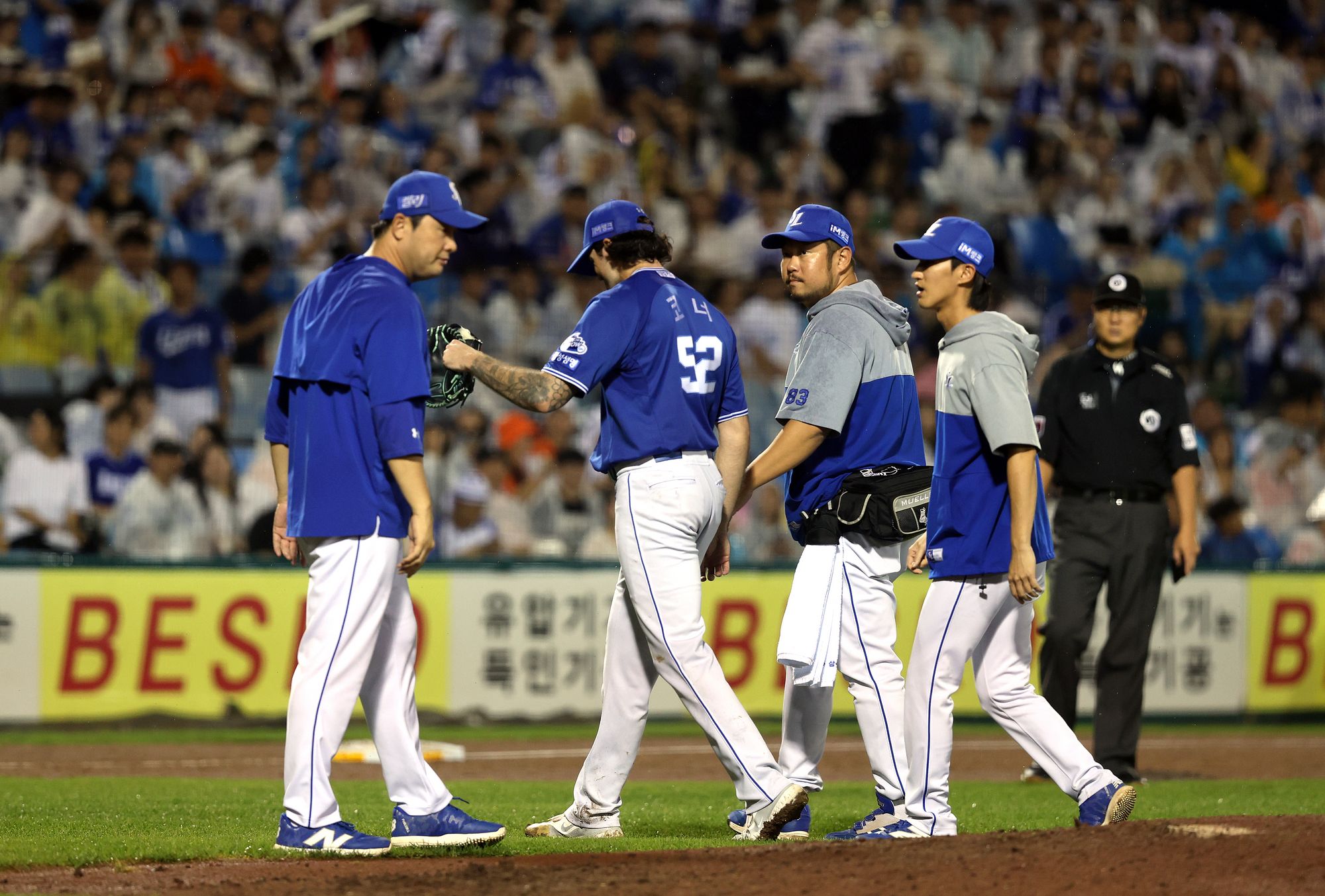 15승으로 다승왕을 차지한 원태인부터 11승씩 기록한 외국인 투수, 코너와 레예스에 좌완 이승현과 백정현도 6승씩 기록한 삼성은 선발진에서도 모두 52승을 기록해 팀 승리의 3분의 2를 선발진이 책임졌지만, 포스트시즌을 앞두고 코너와 백정현의 선발 등판은 어려운 상황입니다.