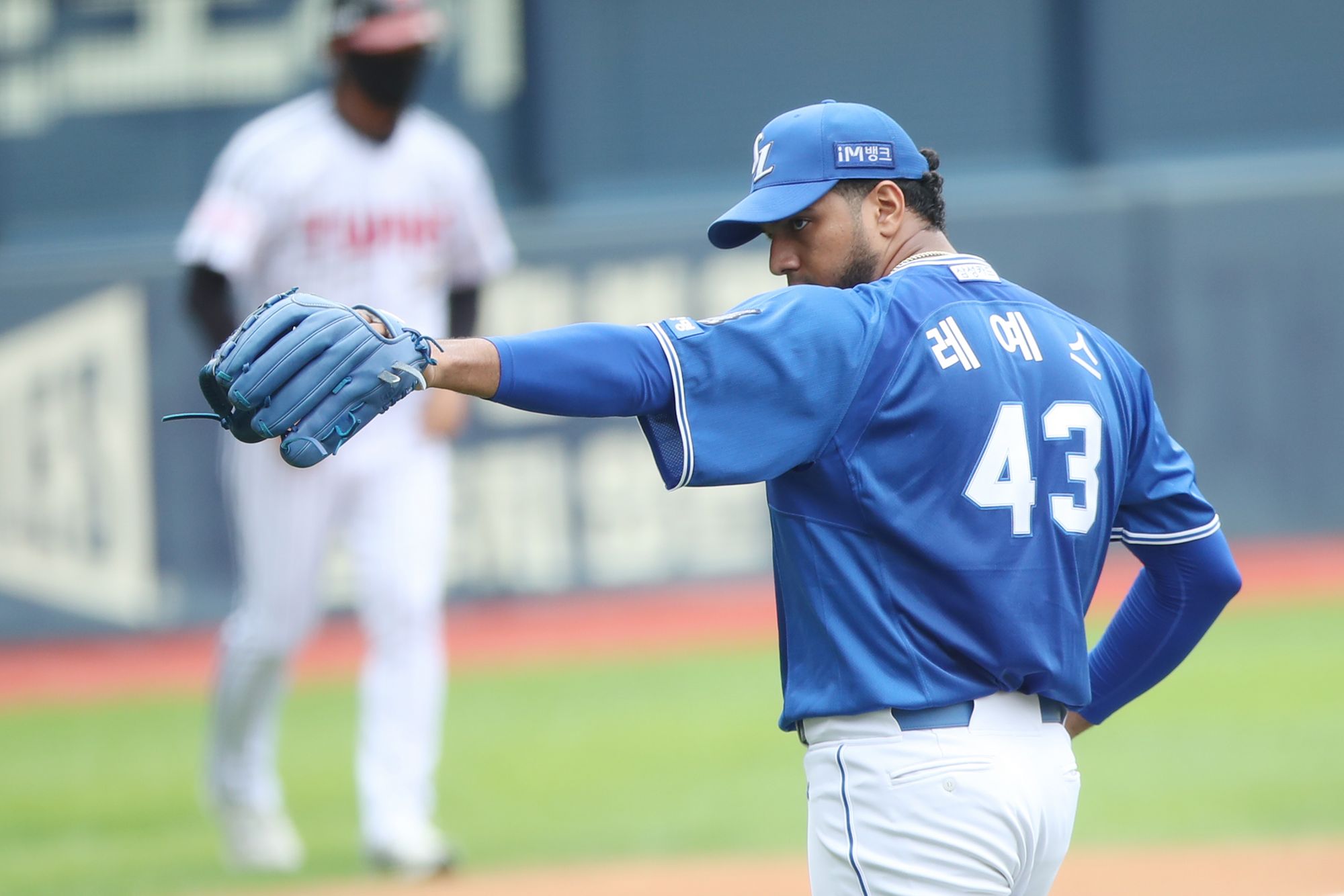 위기도 있었지만, 강민호의 도루 저지와 수비진의 집중력을 바탕으로 초반 위기를 넘어간 레예스는 3회부터 3이닝 연속 삼자범퇴로 상대 LG 선발 엔스의 호투에 전혀 밀리지 않는 모습을 보여줍니다.