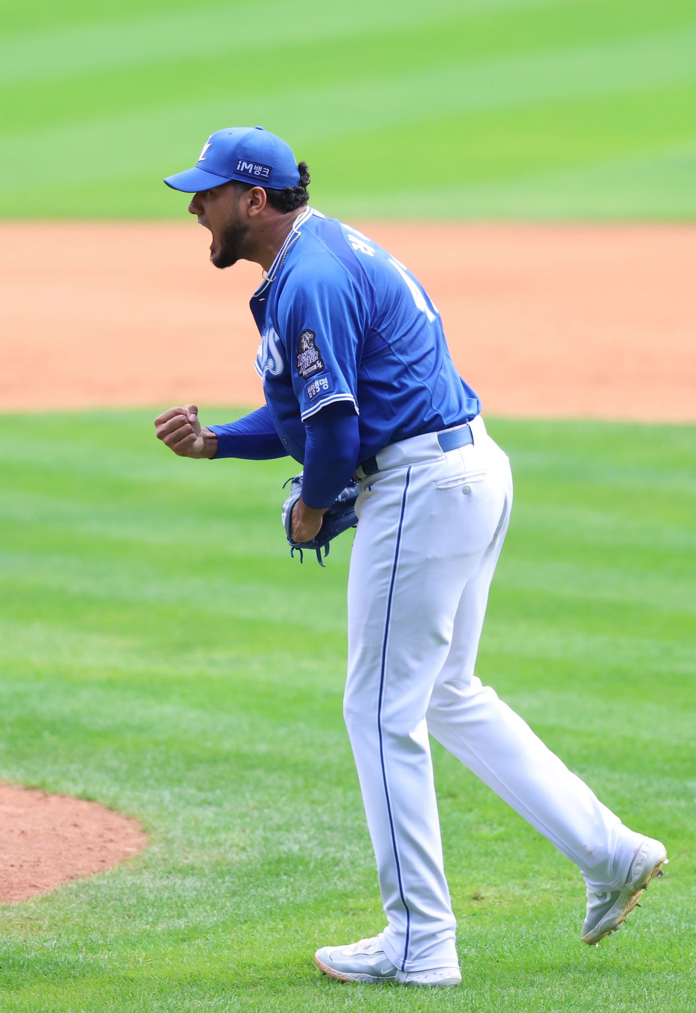 한계투구수인 90개에 이른 6회, 안타와 도루, 몸에 맞는 공으로 최대 위기에 빠진 레예스는 병살타로 이닝을 마무리하며 포효했고, 7회까지 마운드에 올라 LG의 중심타자인 오스틴과 김현수, 오지환을 상대로 다시 삼자범퇴 이닝을 만들었습니다.