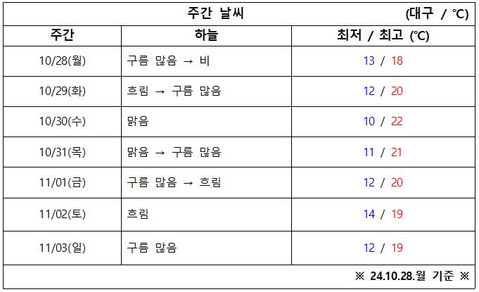 10월 마지막 주 대구·경북 '날씨 체크' 시작합니다.