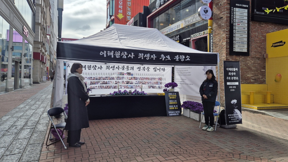 159명이 목숨을 잃은 이태원 참사 2주기를 맞는 10월 29일 대구 중앙로 CGV대구한일극장 앞에 희생자들을 추모하는 분향소가 마련됐습니다.