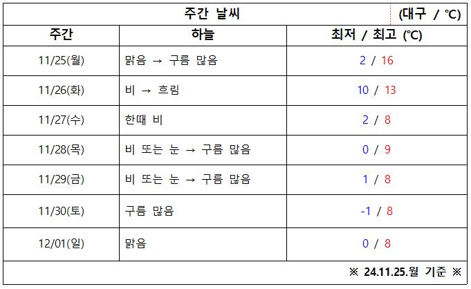 11월 4주 차 대구·경북 '날씨 체크' 시작합니다.