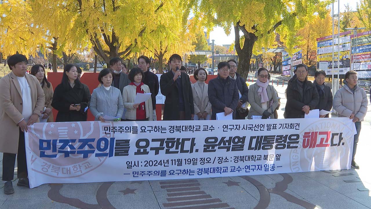 그러면서 "국채보상운동과 4월 혁명의 도화선이 된 2·28의 도시, 우국의 땅에서 대구·경북 지식인들은 윤 대통령에게 더 이상 어떠한 가능성도, 일말의 희망도 기대하지 않는다."며 대통령의 자리에서 물러나라고 밝혔습니다.