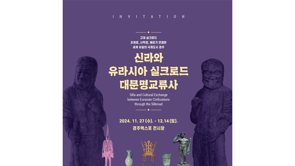 이번 전시회는 고대로부터 이어진 유라시아 실크로드를 통해, 신라는 중앙아시아를 거쳐 유럽으로까지 교역을 이어온 역사적 유물들을 전시합니다.