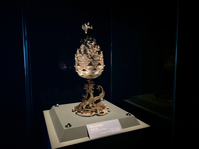 국보인 표충사 청동 은입사 향완과 보물인 통도사 청동 은입사 향완, 보물 해인사 감로도 등 국보 3점, 보물 10점이 포함됐으며 세계 3대 향으로 알려진 침향, 사향, 용연향을 한자리에 모았습니다.