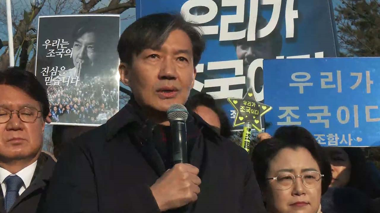 조 대표는 12월 16일 오전 경기도 의왕시 서울구치소 앞에서 지지자 100여 명이 모인 가운데 "2019년 법무부 장관 지명 후 시작된 검찰 쿠데타는 윤석열 대통령 탄핵으로 끝났다"라고 밝혔습니다.