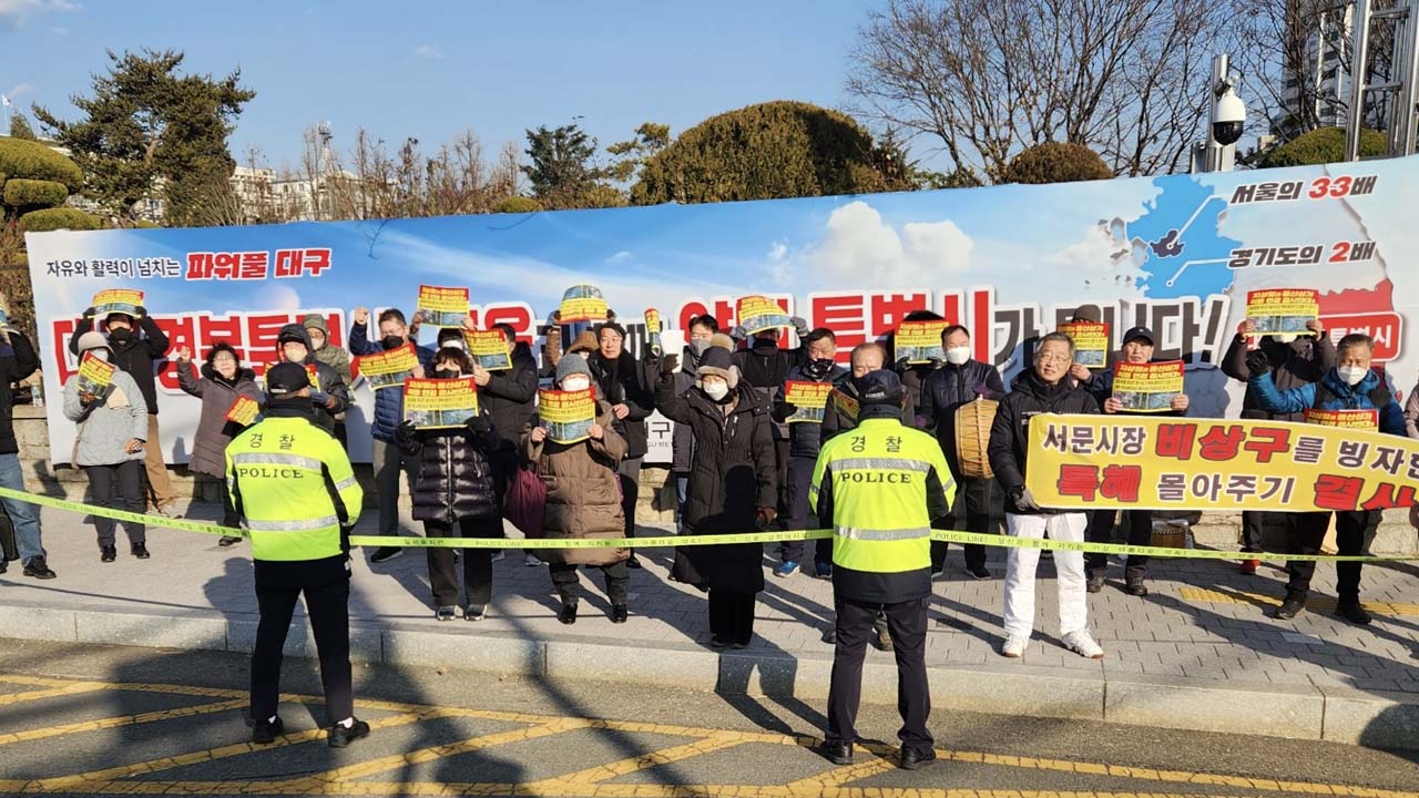 서문시장 대책위원회는 12월 27일 오후 2시 대구 산격청사 앞에서 서문시장역 대합실 확장 공사 반대 집회를 열고 공사 중단을 촉구했습니다.