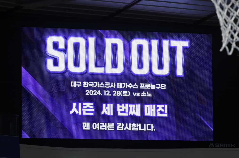 창단 4번째이자, 이번 시즌 3번째 매진 경기에서 자칫 대역전극 수모를 겪을 뻔했던 가스공사는 천신만고 끝에 승리하며 지난 1일 안양정관장전 매진 경기 승리에 이어 창단 2번째 매진 승리를 경험했습니다.