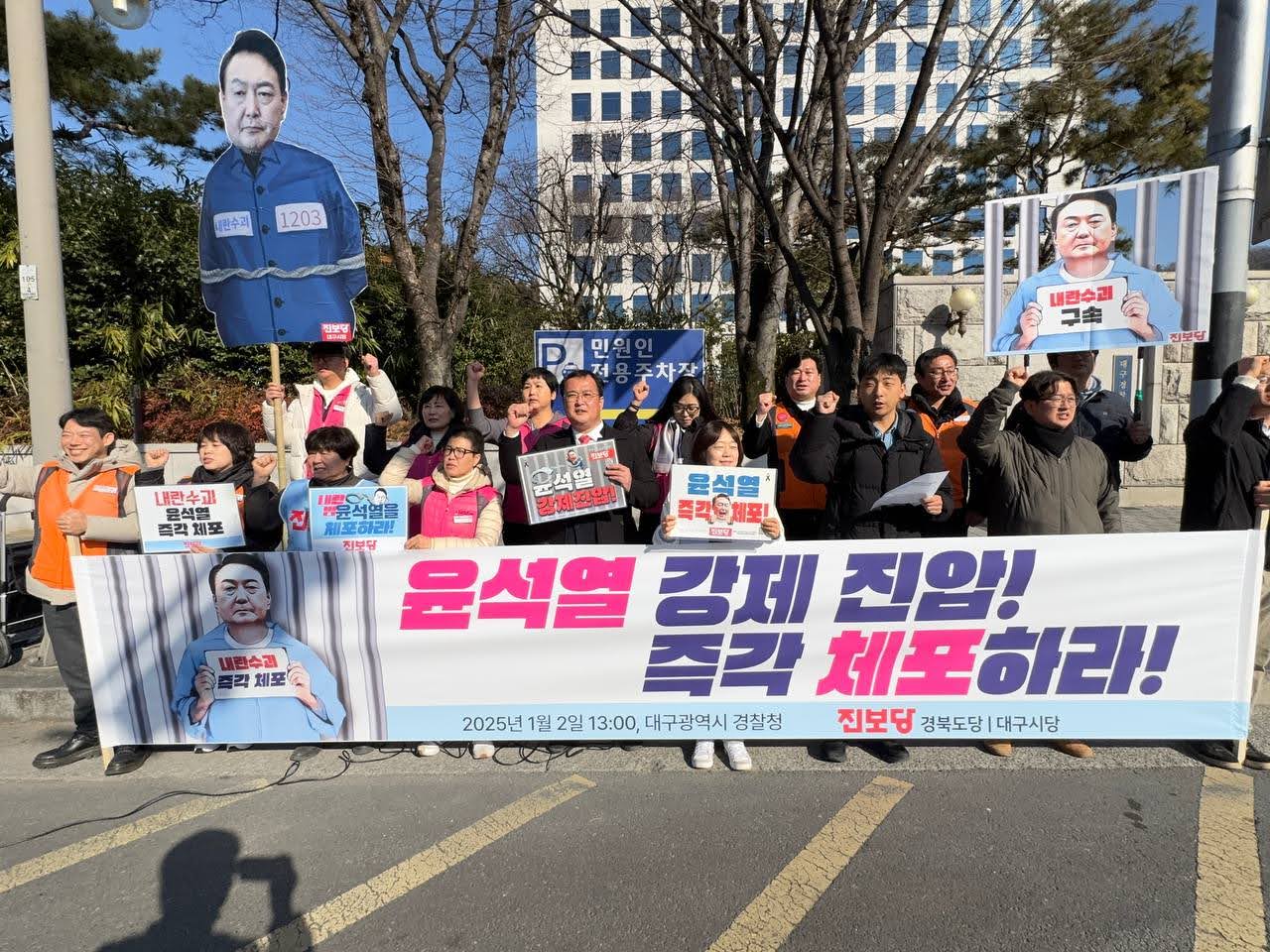 진보당 대구시당과 경북도당은 1월 2일 대구경찰청 앞에서 기자회견을 열고, "윤석열 대통령을 즉각 체포하라"고 촉구했습니다.