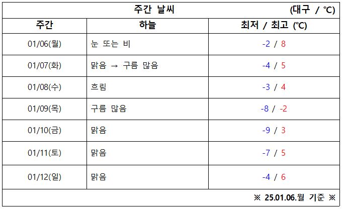 1월 2주 차 대구·경북 ‘날씨 체크’ 시작합니다.