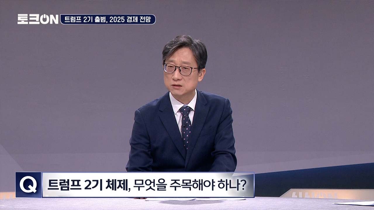 수출 전망이 좋지 않다는 말씀을 주셨는데 그 중요한 요인 중에 두 분이 지적하신 게 트럼프의 등장 아니겠습니까? 트럼프 제2기 체제에서 두 분께서 가장 주목하는 것은 무엇인지 그것이 어떤 영향을 발휘할 것인지 먼저 임 실장님 먼저 말씀 들을까요?