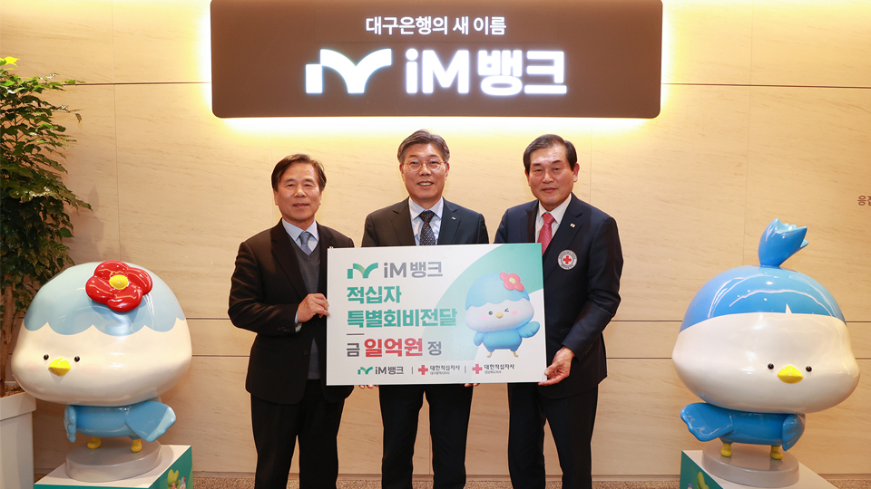 iM뱅크는 대한적십자사 대구경북지사에 2025년도 대한적십자사 특별회비 1억 원을 전달했습니다.