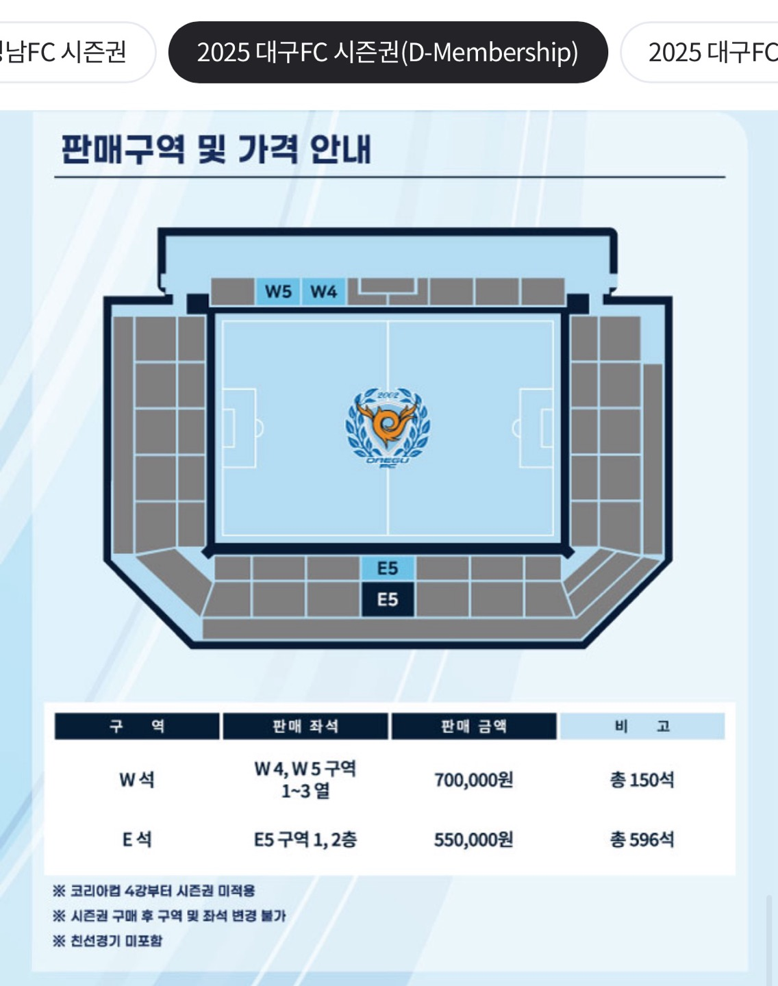 2024년 S석으로 한정했던 시즌권의 경우, 이번 시즌 W석과 E석으로 변화를 주면서 가격 인상으로 인한 수익성 확보와 함께, 그간 서포터즈석 주변에서 응원 문화를 제대로 즐기고 싶어 하는 팬들의 요구도 담으려는 시도도 엿보입니다.