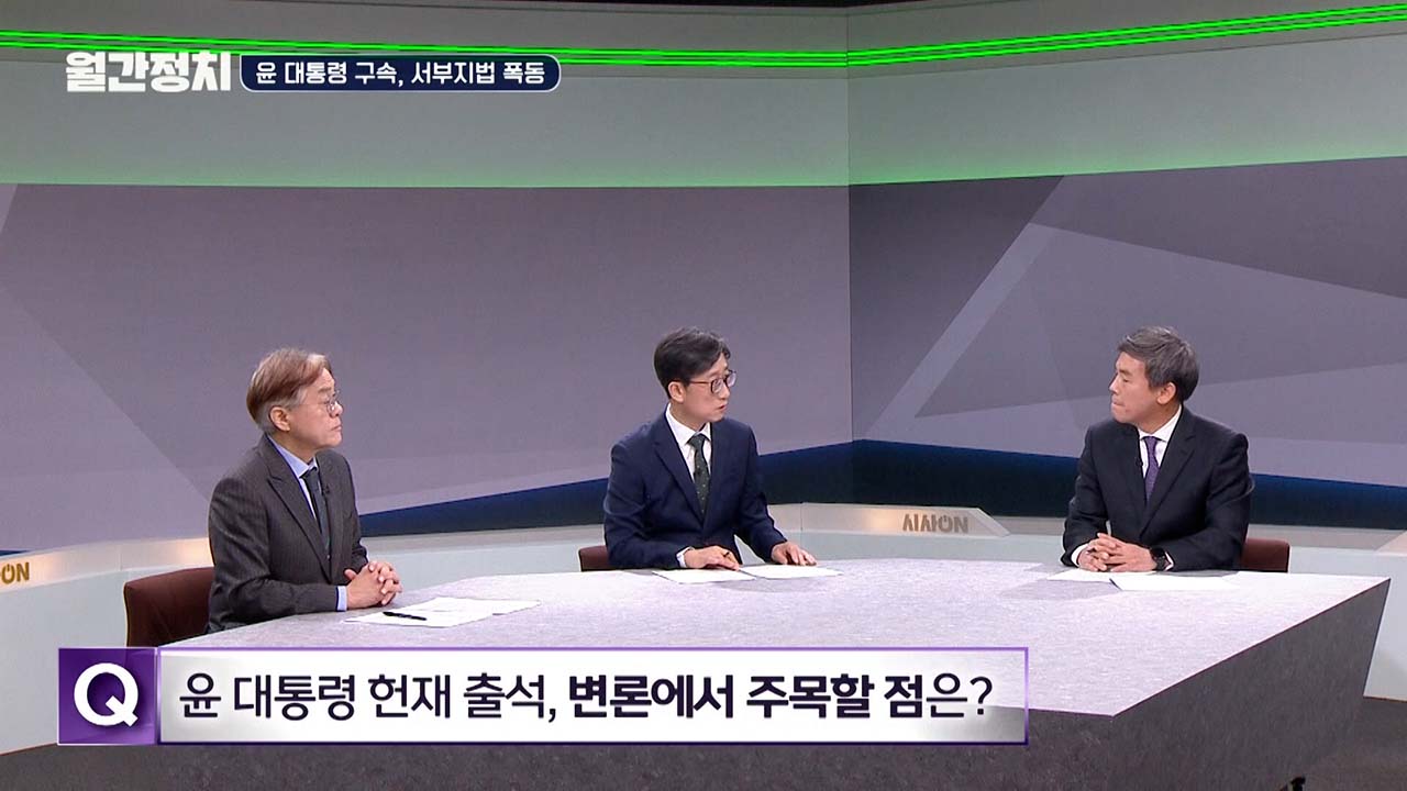 내란 우두머리 혐의로 구속된 윤석열 대통령은 탄핵 심판 변론에 직접 출석하고 있습니다. 탄핵 소추된 대통령이 헌법재판소의 심판정에 직접 출석하는 것은 유례가 없는 일입니다. 과거 노무현·박근혜 전 대통령 등 종전에 탄핵 소추된 대통령은 한 차례도 출석한 적이 없습니다. 지난 21일과 23일 탄핵 재판에 출석한 윤 대통령은 비상계엄 선포의 정당성을 적극적으로 주장했습니다. 또, 김용현 전 국방부 장관을 직접 신문하며 정해진 답변을 요구하듯 질문하고 호응하는 식의 태도를 보였습니다. 오늘 월간정치에서는 윤 대통령이 탄핵 심판 변론에 직접 출석한 의도를 중점적으로 짚어봅니다.