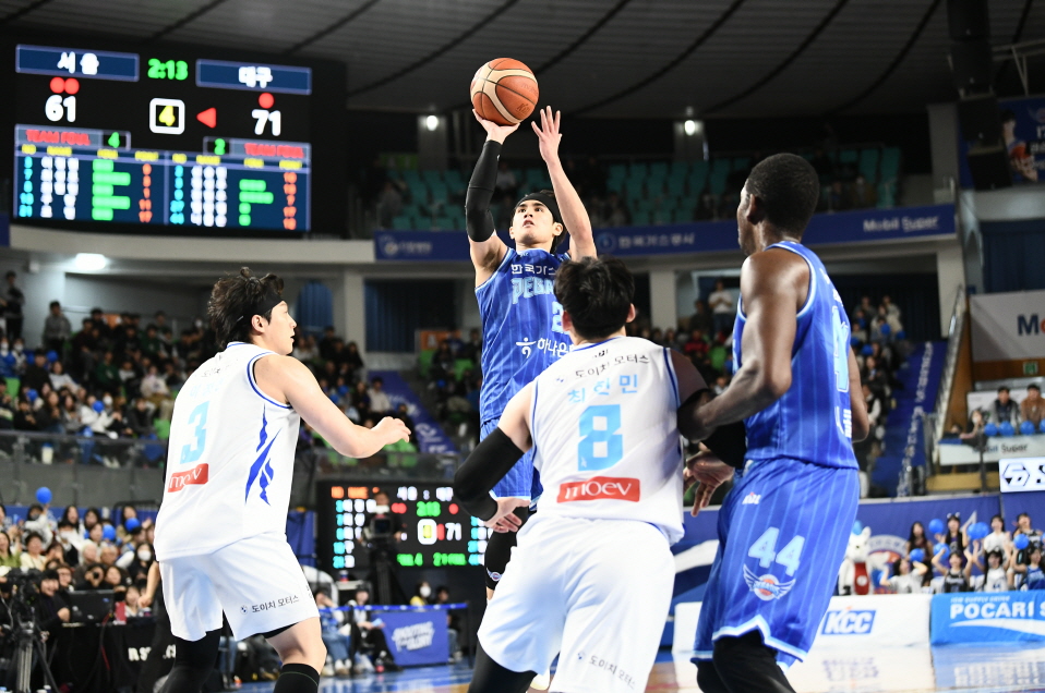 상대의 추격이 맹렬하게 이어졌지만, 4쿼터 8분 16초 시점에 터진 정성우의 자유투로 다시 추격 의지를 누른 가스공사는 니콜슨과 벨란겔의 리바운드로 위기 탈출에 성공, 결국 3점 차 승리로 경기를 마무리했습니다.