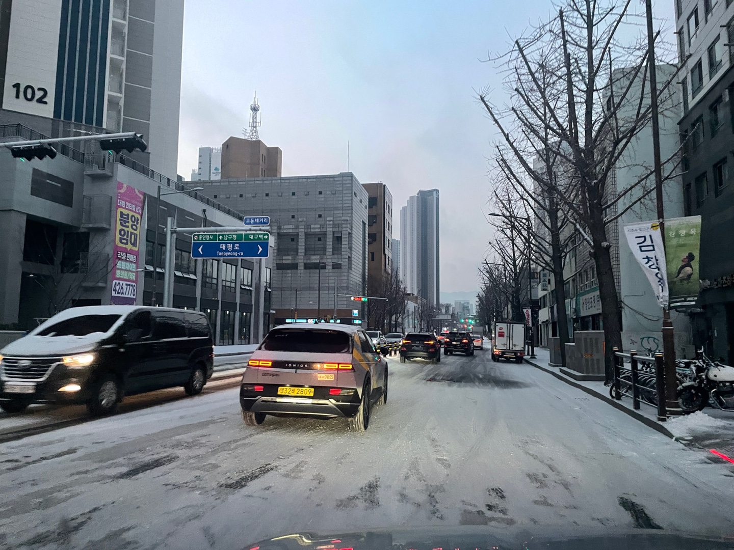 오늘(7일) 오전 7시 기준 결빙 우려로 통행이 전면 제한된 곳은 대구 동구 팔공산로 파계 삼거리에서 팔공 CC 사이 10km 구간과 달성군 삼산삼거리에서 팔조령 정상까지 1.3km 구간, 가창댐 삼거리에서 헐티재 정상 사이 13km 구간, 달서구 파도고개 성당시장에서 두류파출소 사이 2.3km 구간 등 4곳입니다.