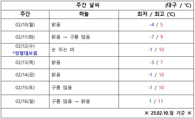 2월 2주 차 대구·경북 ‘날씨 체크’ 시작합니다.