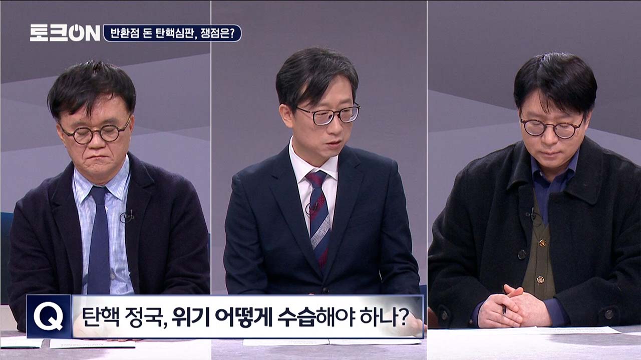 토크ON은 반환점을 돈 탄핵 심판의 이모저모와 앞으로 살펴봐야 할 쟁점들에 대해 논의했습니다. 강우진 경북대 정치외교학과 교수님, 이승협 대구대 사회학과 교수님 두 분 모시고 이야기 나눴습니다. 오늘 좋은 말씀 주신 두 분께 감사드립니다.