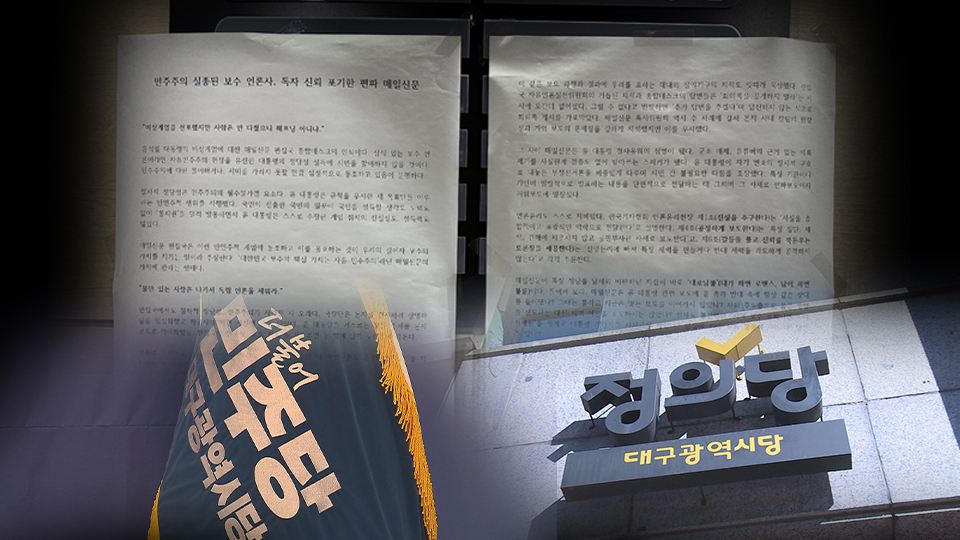 정의당은 "정부·여당에 대해 관대하다 못해 나팔수 역할을 하더니 내란 우두머리 윤석열을 결사옹위하던 매일신문에서 평기자들의 정론직필을 요구하는 목소리가 터져 나왔다"라고 밝혔습니다.
