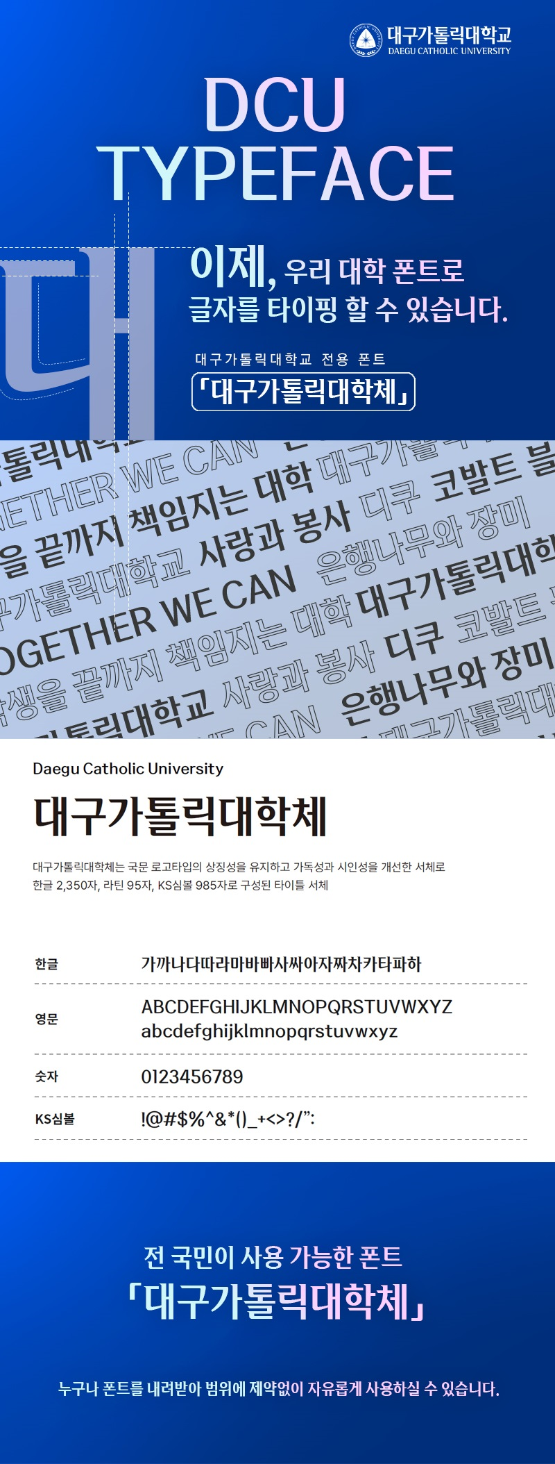 대구가톨릭대학교는 '대구가톨릭대학체'를 개발해, 일반에 무료로 배포했습니다.