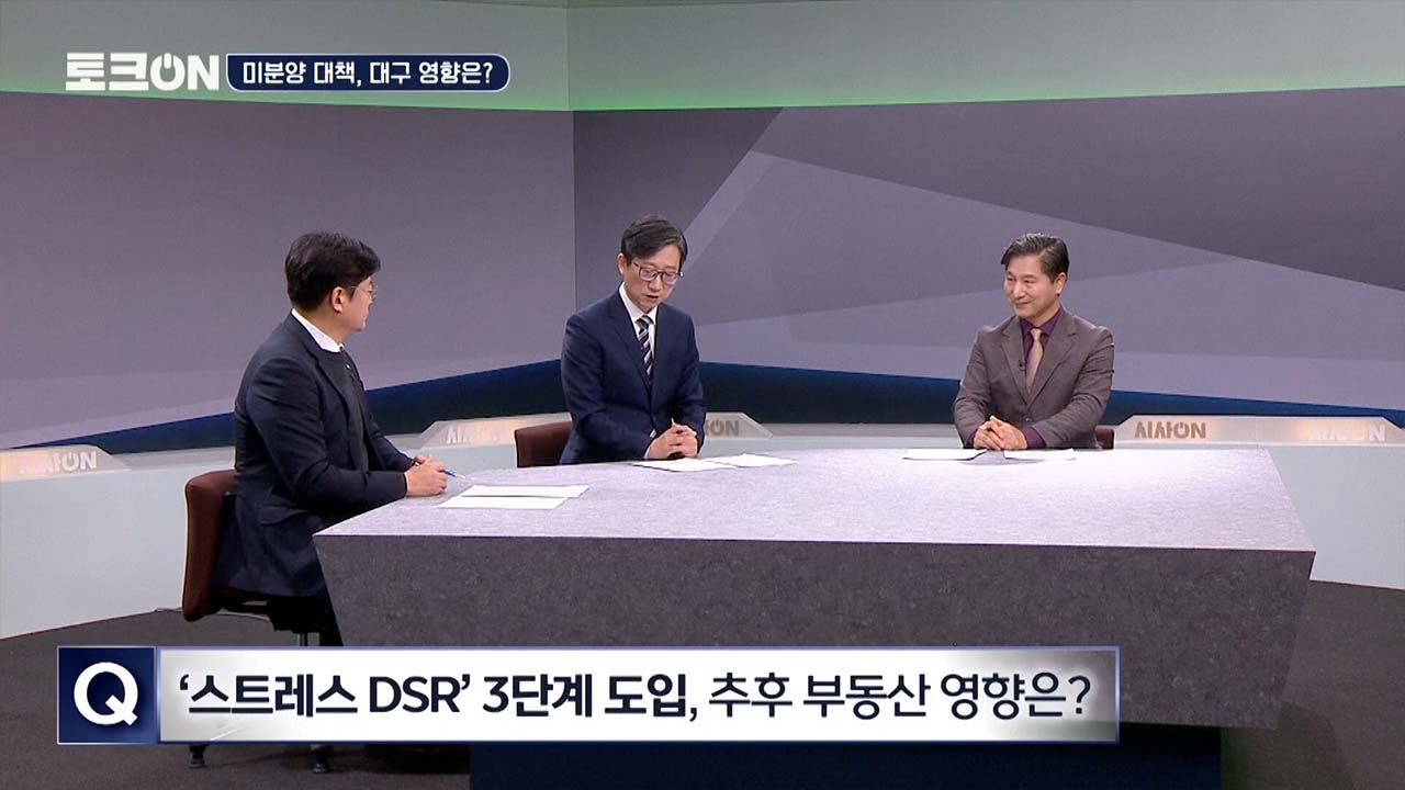 토크ON에서는 대구 부동산 시장에 대해 이야기를 나눠봤습니다. 이병홍 대구과학대 금융부동산과 교수님, 송원배 대구경북 부동산분석학회 이사님, 두 분 모시고 좋은 말씀 들었습니다. 감사합니다.