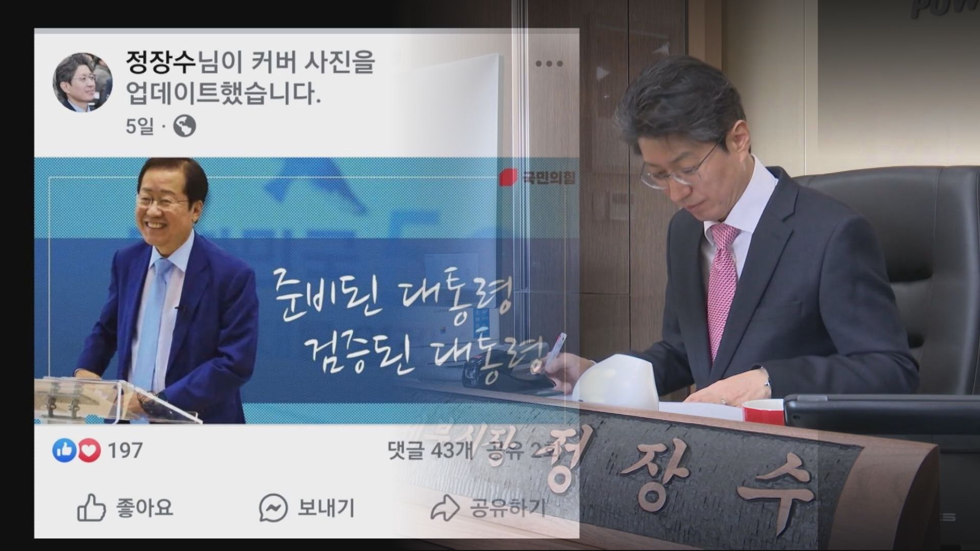정장수 경제부시장은 설날인 지난 1월 29일에 홍준표 대구시장을 ‘준비된 대통령, 검증된 대통령’이라고 홍보하는 게시물을 자기 SNS에 올려 공직선거법을 어긴 혐의를 받고 있습니다.