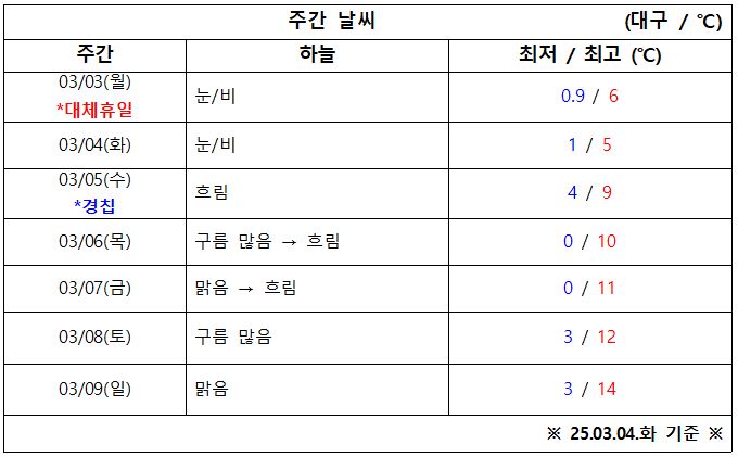 3월 1주 차 대구·경북 '날씨 체크' 시작합니다.