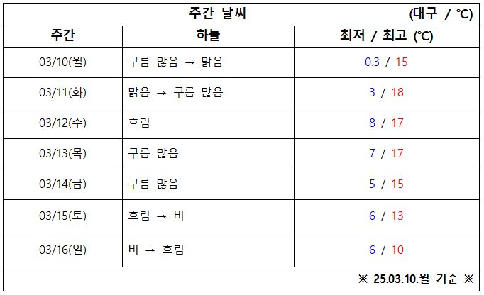 3월 1주 차 대구·경북 ‘날씨 체크’ 시작합니다.