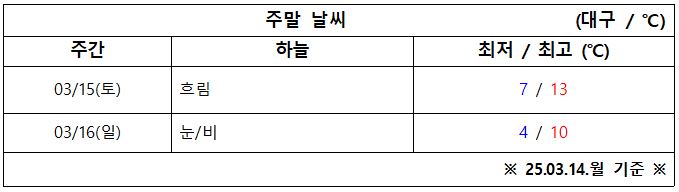 3월 2주 차 대구·경북 주말 '날씨 체크'