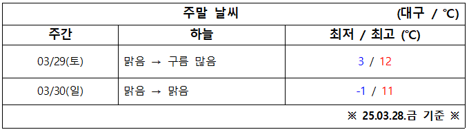 3월 4주 차 대구·경북 주말 '날씨 체크'