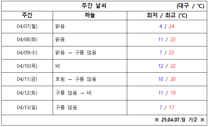 4월 2주 차 대구·경북 ‘날씨 체크’ 시작합니다.