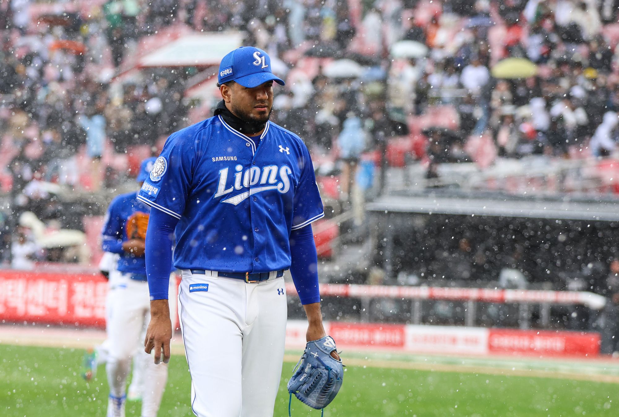 경기 시작을 앞두고 우박이 떨어진 수원은 1회초 삼성이 선취점을 뽑을 때까지만 해도 날씨가 좋았지만, 1-0으로 앞서가던 1회말 선발 레예스의 투구 도중 다시 우박이 쏟아지며 경기가 10여 분가량 중단됩니다.
