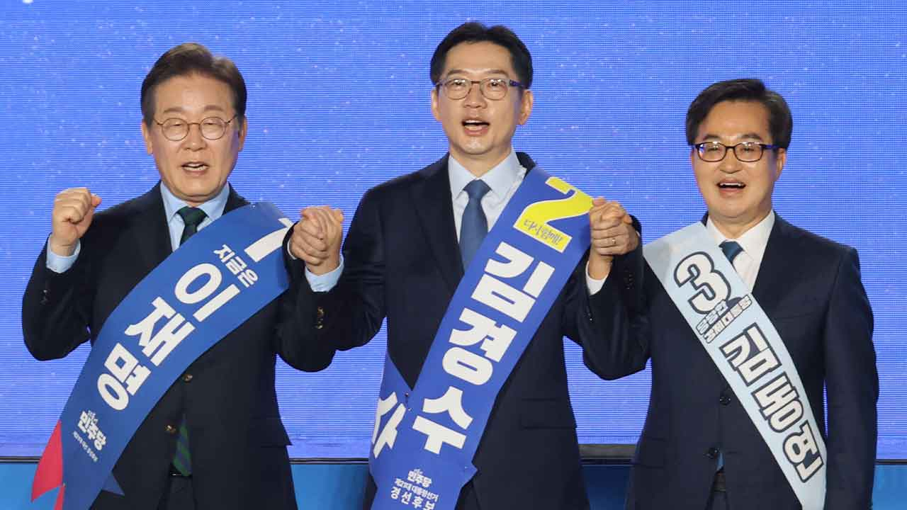 앞서 4월 19일 충청권 경선에서 이 후보는 88.15%를 얻었고, 김동연 후보가 7.54%, 김경수 후보는 4.31%를 각각 얻어 이 후보가 충청권에 이어 영남권에서도 압승을 거뒀습니다.