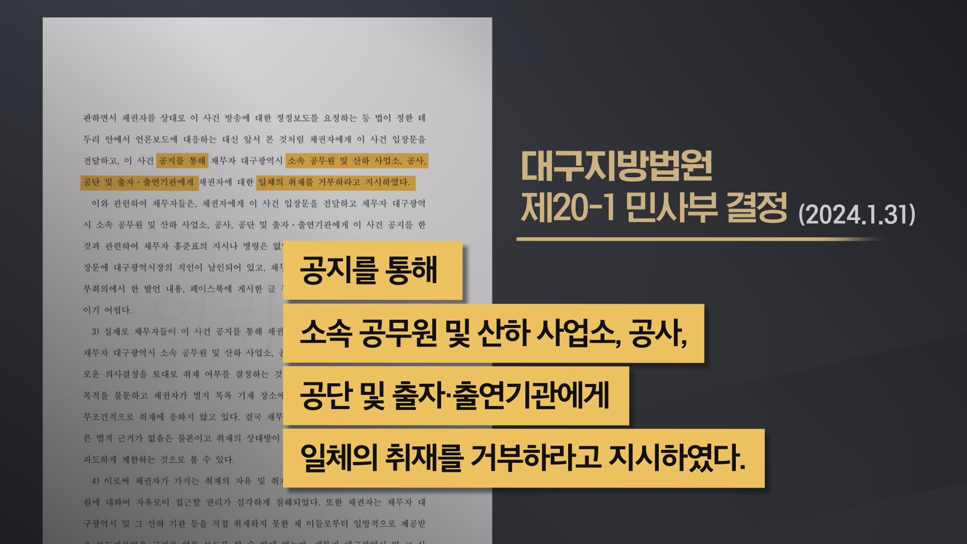 - [심층] 취재 거부 9개월만에···법원 "대구시는 취재 방해 중단하라"