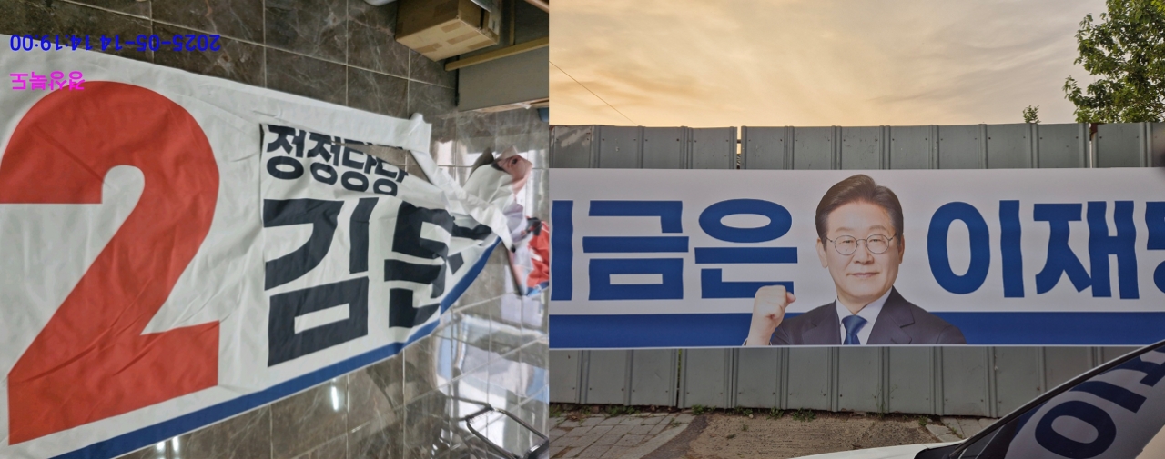 5월 14일 오전 경북 영천시 완산동 한 교차로와 북안면 거리에서 국민의힘 김문수 대선 후보의 현수막이 각각 훼손된 채 발견됐습니다.