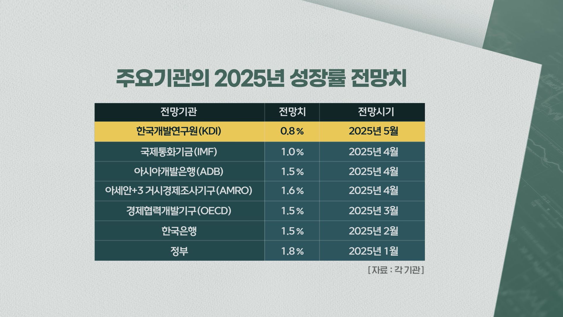 한국개발연구원 KDI가 발표한 2025년 상반기 경제전망에서 우리나라 경제성장률을 0.8%로 전망했습니다.