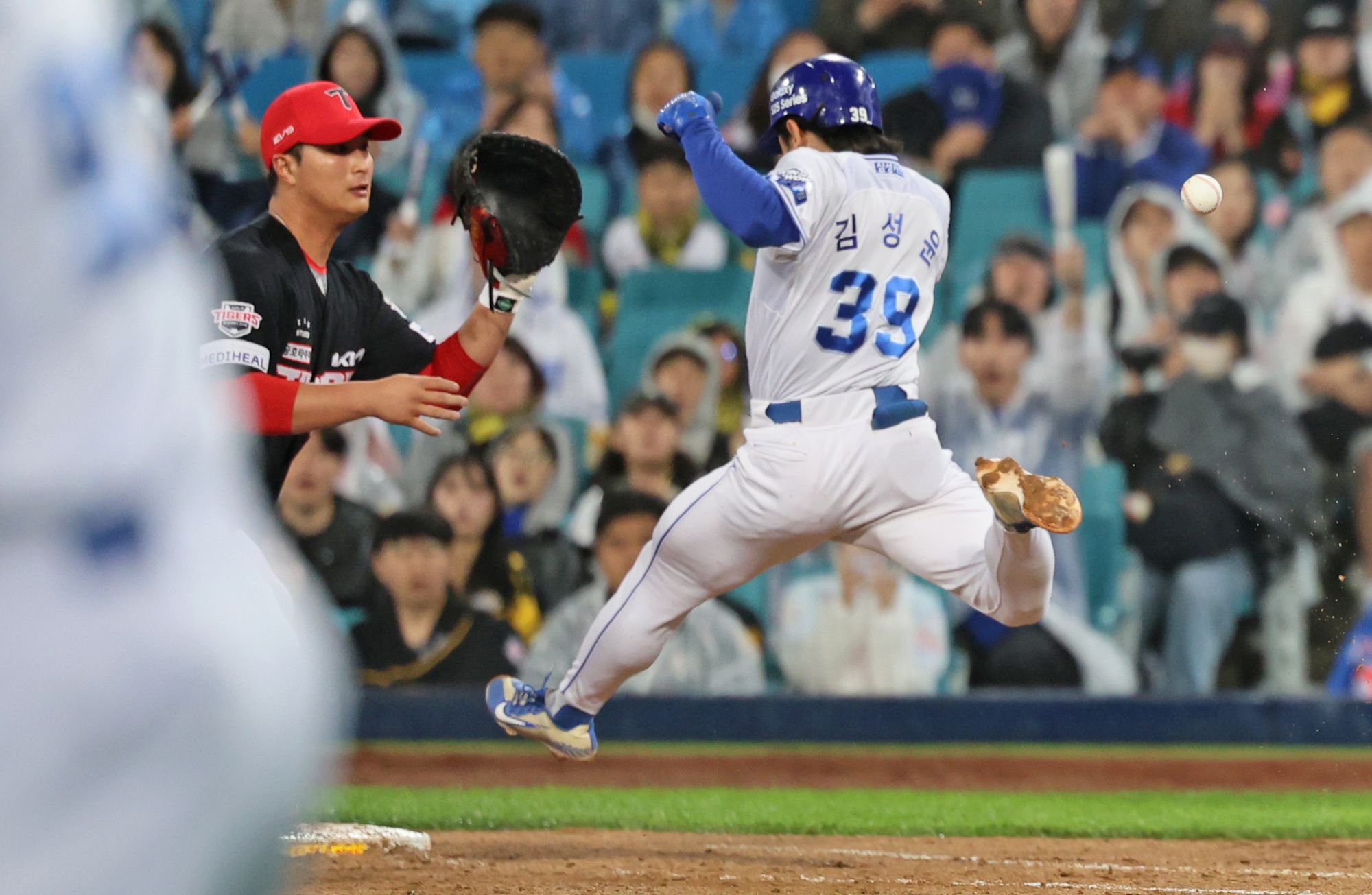 2사 이후, 폭투와 김성윤의 타구 처리 과정에서 나온 실책으로 결국 대주자 이성규가 홈을 밟은 삼성은 4-4로 이날 2번째 동점에 성공합니다.