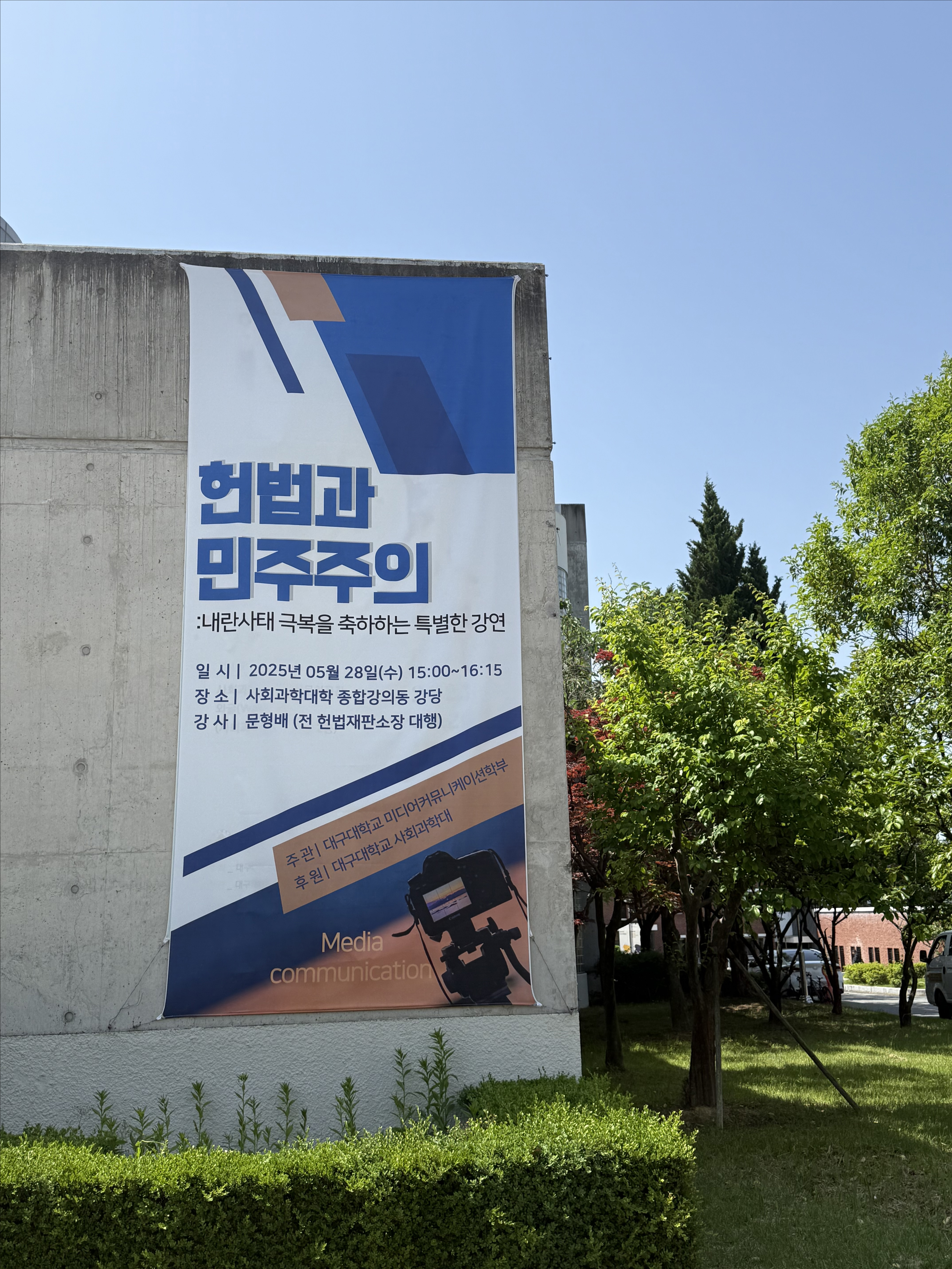문형배 전 헌재 소장 권한대행은 5월 28일 오후 3시부터 1시간 15분 동안 대구대학교 사회과학대학 종합강의동 강당에서 '헌법과 민주주의'를 주제로 특강합니다.